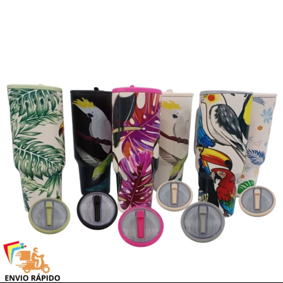 Design Vibrante: As estampas coloridas de pássaros trazem alegria e um toque de natureza ao seu dia a dia. Seja o centro das atenções com este copo que é pura personalidade!