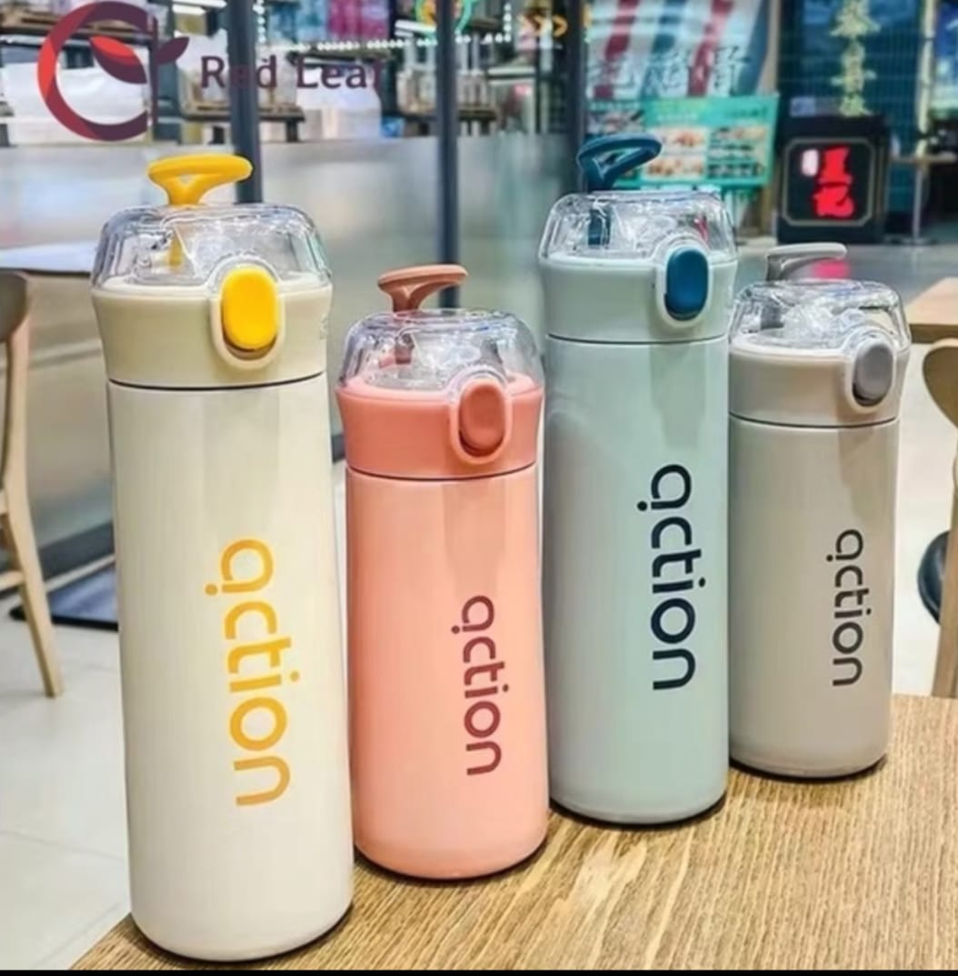 Material: Aço inox, tampa plástico abs transparente Design Elegante, muito boa para levar ao trabalho, escritório ou faculdade, aparência de tampa transparente e com canudo, fácil de beber e com uma alça para facilidade de transportar.