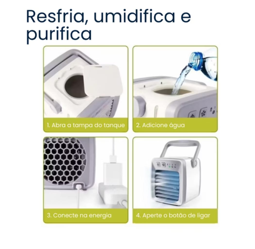 Compacto e leve, ele é ideal para uso em casa, no escritório, na cozinha ou até mesmo durante viagens e acampamentos, oferecendo a praticidade de um clima fresco sempre ao seu alcance.