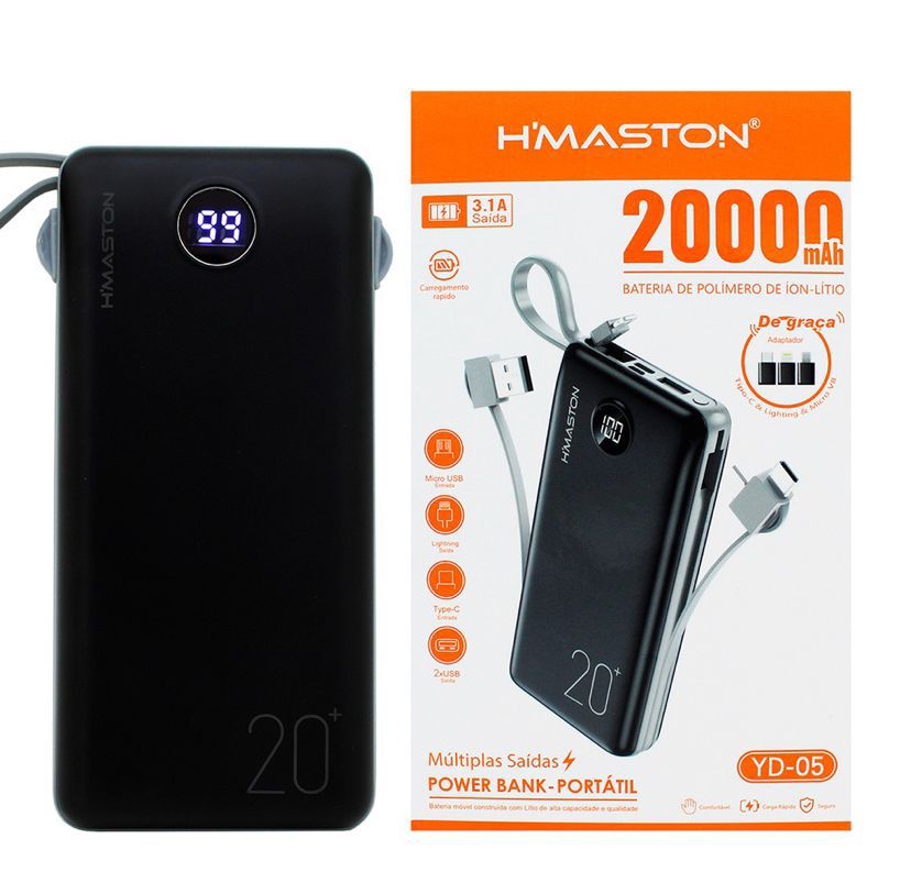 Introduzido no mercado com a intenção de renovar o setor de carregadores, O Power Bank possui 2 cabos contando com 3 modelos de carregadores, para Iphones, Android (V8 Micro USB) e Tipo C, possibilitando carregar até 3 aparelhos ao mesmo tempo.