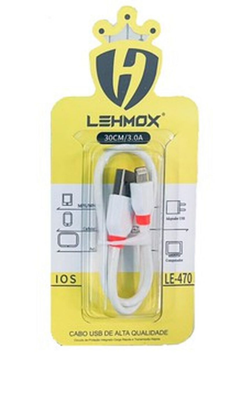 Cabo Usb curto 30cm 3.0A carga celular IOS Lighting Lehmox - LE-470