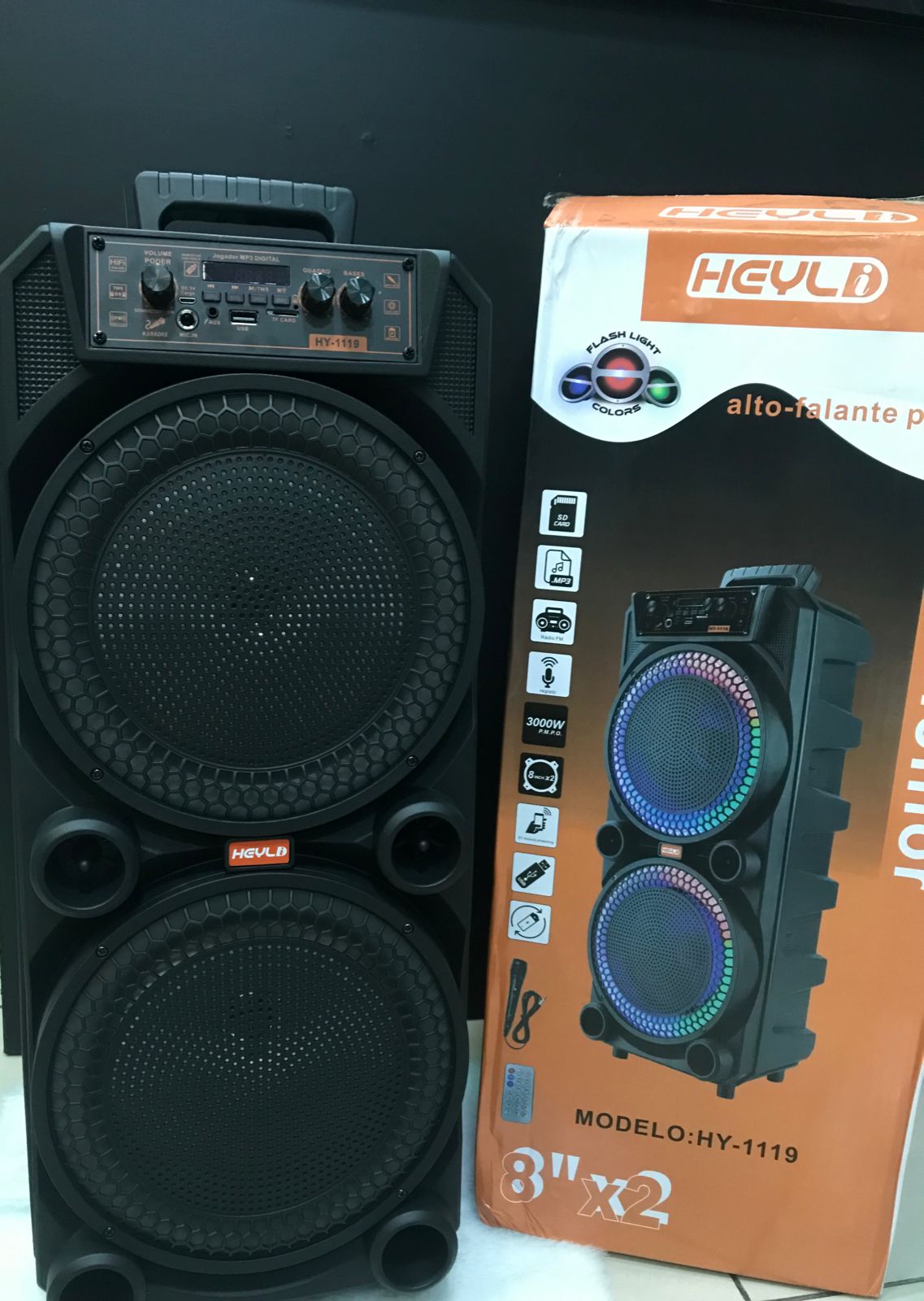 - acessórios: um cabo carregador usb, um controle remoto, um microfone ligado.