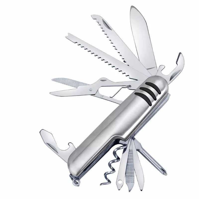 Canivete multifuncional ferramenta muito útil para qualquer situação de emergência e também para aventuras, sobrevivência ao ar livre, camping etc... Medidas: 9cm X 2,15cm X 1,5cm Inclui as funções de: - Tesoura - Abridor de Latas - Chave Philips - Madeira - Serra - Fish Scaler - 2 Lâminas - Removedor de Gancho - Saca-Rolhas - Lixa