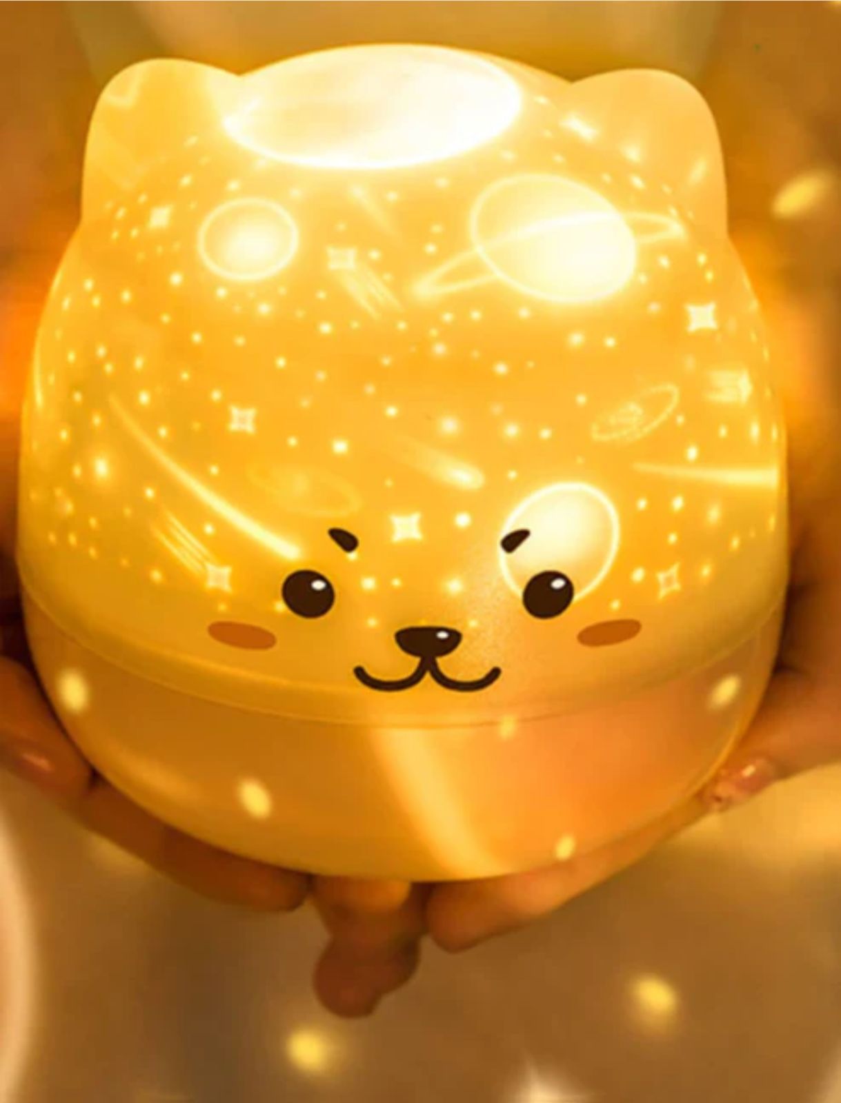 Essa belíssima luminária infantil deixa os cômodos com uma iluminação relaxante e agradável e ainda possibilita a projeção da imagem 360°, além de permitir que essas imagens fiquem em movimento graças a sua função giratória.